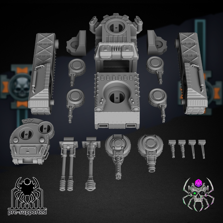 The Will Leeb is a hulking, heavily armored assault tank designed to dominate the battlefield with unrelenting firepower and durable protection. Built to endure brutal warfare and spearhead armored assaults, the Will Leeb combines the raw might of mid-20th century tank design with grimdark sci-fi aesthetics. Whether it’s holding the line, breaking enemy formations, or acting as a mobile fortress for your forces, the Will Leeb is a devastating centerpiece for any army.